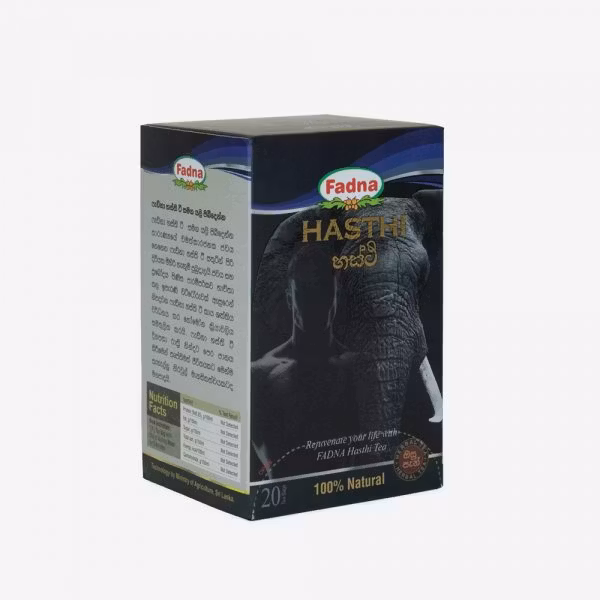 Hasthi Tea innehåller två traditionellt endemiska örter, allmänt kända som Ashwagandha och Welpenela, som Ayurvediskt bevisats stärka fysisk och mental uthållighet. Detta te är utmärkt för de som tränar regelbundet, då det hjälper till att främja hälsosam viktökning. Dessutom är detta örtte bra för att behandla kroppsvärk och främja libido.