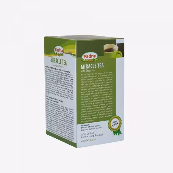 Miracle-te – Moringa med grönt te är en kraftfull antioxidant som kan rensa bort toxiner från kroppen och bibehålla kroppens systemfunktioner på en optimal nivå. Denna fantastiska skönhetsbooster skyddar kroppen från skador orsakade av fria radikaler och hämmar onaturlig celltillväxt. Regelbunden konsumtion kommer att minska risken för hjärt-kärlsjukdomar och öka ämnesomsättningen.