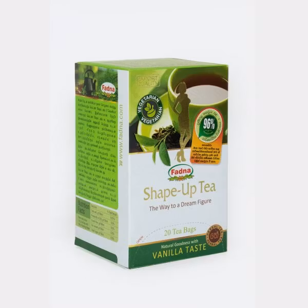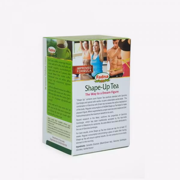“Shape-Up” Tea är speciellt formulerat för att hjälpa dig att naturligt uppnå din drömfigur. Det innehåller 100 % ren Ceylon-te noggrant blandat med Garcinia Cambogia och kryddat med vanilj för att ge en aptitretande smak. Denna örtformel har inga biverkningar och kan främja kroppens antioxidationsförmåga samtidigt som den kontrollerar överdriven aptit. Produktens effektivitet bevisades och publicerades på Functional Foods Conference 2020 som hölls i Kalifornien (USA).